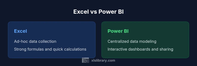 In the modern analytics stack, Excel and Power BI occupy different but complementary roles. The difference between Excel and Power BI is not simply a tooling choice; it reflects how organizations plan data workflows, governance, and decision-making. Excel remains the de facto workbook for data capture, ad-hoc analysis, and iterative modeling by individuals or small teams. Power BI, by contrast, provides a scalable platform for modeling data, building reusable datasets, and delivering interactive dashboards to a broader audience. According to XLS Library, most teams start with Excel to collect raw data and perform initial checks, then transition to Power BI to create governance-friendly reports that drive decisions across departments. Beyond tooling choice, the practical difference centers on scale, governance, and velocity of insights. Excel is intimate and fast for personal analysis; Power BI scales insights across people, time, and data sources. When deciding between the two, map your audience, data volumes, and governance needs first, then pick the tool that aligns with those realities. For many organizations, the best outcome is a hybrid workflow: capture and clean data in Excel, then publish a curated model to Power BI for dashboards and governance.