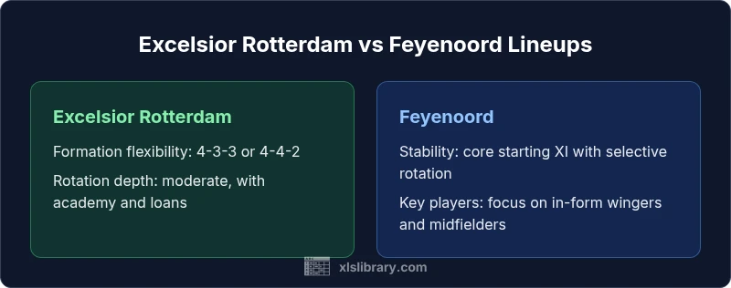Excelsior Rotterdam vs Feyenoord lineups reveal opposite approaches: Excelsior tends to rotate more for development and squad balance, while Feyenoord relies on a stable core with selective rotation. This comparison, grounded in XLS Library analysis, helps fans anticipate lineup shifts across Eredivisie matches and cup ties.