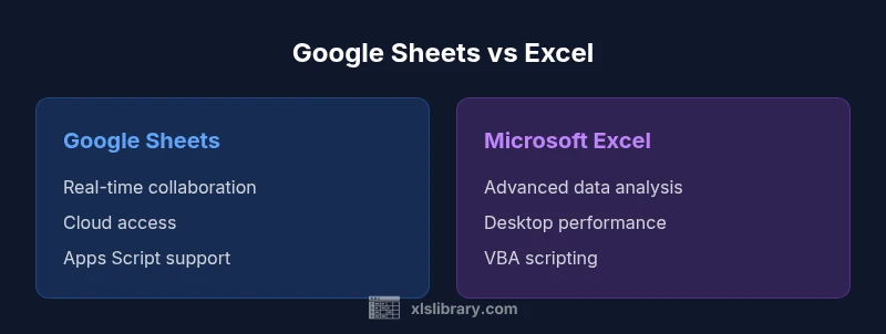 In the context of google docs excel, two tools dominate everyday spreadsheet work: Google Sheets, part of the Google Docs ecosystem, and Microsoft Excel, the flagship program of the Office suite. Sheets is designed for cloud-first collaboration and rapid sharing, while Excel emphasizes depth, performance on large datasets, and a mature set of data-analysis features. This section clarifies where each tool shines, how they are built, and what this means for teams that must move data between environments. According to XLS Library, many teams start with Sheets for lightweight budgets or planning because of real-time co-authoring and effortless access from any device. The XLS Library team also notes that Excel remains the go-to option when you need advanced formulas, powerful data modeling, or sophisticated automation in a desktop or enterprise setting. The key takeaway is that google docs excel questions often reflect how organizations balance collaboration and control: Sheets for sharing, Excel for heavy-lifting. The rest of this article digs into concrete differences, practical implications, and migration tips so you can make informed decisions without guessing.