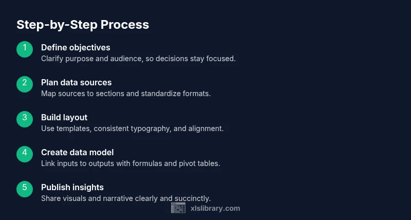 Begin with a clear objective and audience, map data sources to sections, and set up a reusable template. Establish naming conventions and a simple data map to align team members and reduce rework.