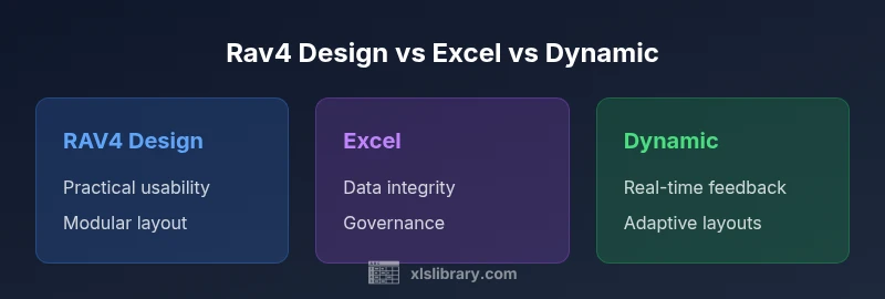 In this article we treat rav4 design vs excel vs dynamic as a cross-domain exercise to surface transferable design lessons. Rav4 design represents pragmatic usability and versatility in a physical product; Excel embodies disciplined data work and governance; dynamic design captures real-time adaptability in interfaces. According to XLS Library, examining these domains side-by-side helps professionals recognize when a given pattern is appropriate and when it may overreach. While the domains differ in material constraints, the core questions are the same: how do we make tasks clearer, faster, and more reliable for real people? The goal is not to equate cars with software but to extract actionable principles that improve dashboards, models, and interactive reports for Excel users.