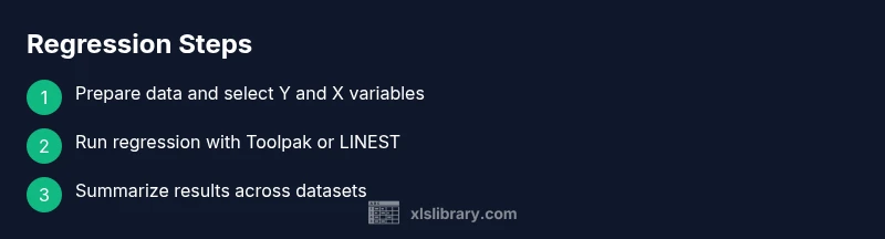 According to XLS Library, regression analysis is a foundational technique for understanding how a set of predictor variables relates to a numeric outcome. When you face several datasets—perhaps from different time periods, regions, or product lines—the goal is to compare how predictors influence the outcome across contexts. This approach helps you spot consistent patterns, detect context-specific effects, and quantify uncertainty in your estimates. The XLS Library team emphasizes starting with a clear theory: which predictors should explain the outcome, and which datasets are comparable. Keeping hypotheses explicit makes the subsequent steps more reliable and easier to audit.