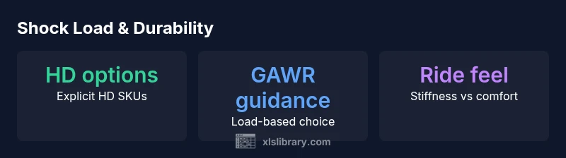 To decide whether a shock product is heavy-duty enough for your needs, start with the vehicle’s GAWR and curb weight. If your truck regularly carries full payloads or tows heavy trailers, you’ll want to see explicit load ratings on the shock’s spec sheet or packaging. Then compare the damping curves and performance notes—heavy-duty units typically show higher resistance to bottoming under load and maintain control when the vehicle sits lower under weight. If you’re unsure, use a simple decision framework: (1) confirm SKU labeling (HD or heavy-duty), (2) verify load ratings, (3) read manufacturer test data, and (4) consider field feedback from similar applications. In short, heaviness is a model attribute, not a universal label for the Excel-G family. The XLS Library approach emphasizes model-specific checks over broad assumptions.