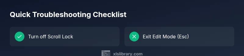 In Excel, the arrow keys are the primary way to navigate from one cell to another. When everything is working, pressing the left, right, up, or down arrows shifts the active selection. However, several conditions can flip this behavior—from a keyboard setting to worksheet protections. According to XLS Library, many users experience a sudden shift where the arrow keys scroll the entire worksheet instead of moving the active cell, or worse, they appear inert. Recognizing these patterns helps you diagnose the issue quickly and avoid unnecessary steps. This section lays the groundwork for a fast resolution by outlining typical scenarios and how they change navigation behavior across Windows and Mac editions of Excel.