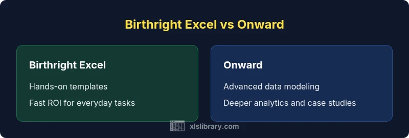 Birthright Excel tends to attract beginners and mid-level users who value speed, clarity, and repeatable templates. If your goal is to become productive quickly—producing clean reports, automating repetitive chores, and building a reliable set of ready-to-run workflows—Birthright Excel often delivers measurable early ROI. Onward appeals to analysts and power users who want to push beyond templates into data modeling, power queries, and end-to-end analytics pipelines. Those learners prefer a narrative that ties techniques to business questions, with datasets that resemble complex, real-world problems. The XLS Library team observes that the right path depends on your starting point, your appetite for depth, and how you prefer to learn—stepwise templates versus end-to-end case studies.