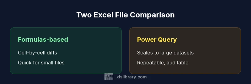 Discover practical methods to compare two Excel files with formulas, Power Query, and robust workflows. Learn when to use each approach for small datasets and large workbooks, ensuring accuracy, auditability, and reproducibility.