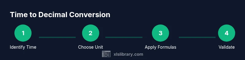 In many Excel workflows, time data is stored as time values (for example 08:30). If you need to aggregate hours for payroll, project tracking, or billing, using a decimal representation simplifies arithmetic and reporting. According to XLS Library, converting time to decimal reduces errors when summing hours across days and when feeding data into dashboards. Excel stores times as fractions of a day, so 0.5 equals 12:00 PM. By converting to decimal hours, minutes, or seconds you can perform straightforward arithmetic without reformatting results. When you have a column of time entries and you need to total hours across multiple days, converting to decimal makes summations intuitive and prevents formatting drift. This approach also makes it easier to feed data into other systems that expect numeric durations rather than time formats.