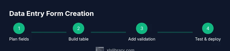 Before you touch Excel, map out what you want to collect and how you will use it. Start with the data dictionary: list each field, its data type (text, number, date), and any constraints. Decide which fields are mandatory and which can be optional. Consider how entries will be validated and how the form will handle errors. For teams adopting collaboration, sketch how multiple users will access the form and how submissions will be stored in the table. The plan should also account for future changes—will you add new fields or alter formats later? By visualizing the workflow first, you reduce the need for major rewrites once you begin building. The XLS Library Team notes that a thoughtful plan reduces rework and creates a consistent entry experience for everyone involved.