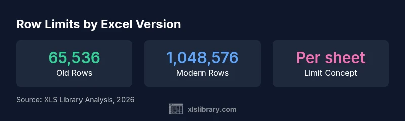 The Row Limit Question The most common question about working with large datasets in Excel is does excel have a limit in rows. Does excel have a limit in rows? The short answer is yes, and the exact cap depends on the version you’re using. In practice, many teams discover that the modern per-sheet limit is what drives their workbook design, not only file size or memory. According to XLS Library, users often underestimate how quickly a sheet can hit its ceiling when importing unfiltered raw data, exporting from databases, or performing iterative analyses. The key takeaway is to think in terms of sheets and data models, not a single tab containing every row. This mindset helps you avoid performance slowdowns, complex formulas, and confusing references as your dataset grows. For readers new to Excel, the per-sheet limit is the most predictable constraint you’ll encounter, and planning around it from the start saves time later.