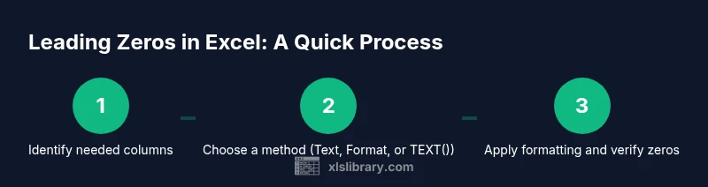 In Excel, a leading zero is not always preserved by default. When numbers are imported, typed, or calculated, Excel stores values as numbers. Any leading 0 can disappear, changing identifiers such as ZIP codes, product SKUs, or asset codes. The phrase excel 0 in front describes the practice of deliberately displaying or maintaining that initial zero. For data integrity, it is essential to choose a strategy that preserves the string or the visible representation without breaking downstream calculations. According to XLS Library, consistent handling of leading zeros prevents misinterpretation of IDs and reduces data-entry errors. In practice, you will learn when to treat codes as text, when to use formats to display zeros, and how to validate a dataset so the first character remains a zero across workflows.