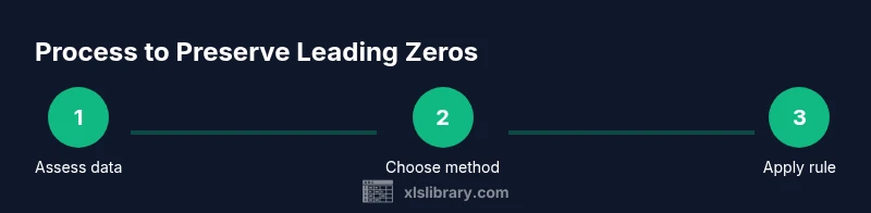 In this guide, you will learn how to keep leading zeros in Excel for codes, IDs, ZIP codes, and SKUs. You’ll compare methods like text formatting, custom number formats, and formula-based approaches, then choose safe, repeatable practices for data entry and imports. According to XLS Library, selecting the right method prevents accidental numeric conversions. excel keep leading zeros