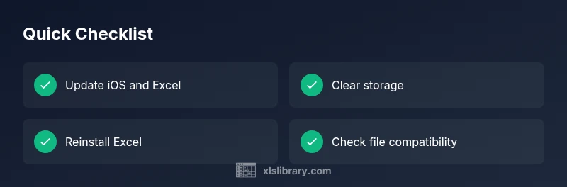 Before you dive into fixes, verify your system health. Check if other apps run normally and whether the issue occurs with multiple workbooks or a single file. If the problem happens across apps or after a recent update, you may be dealing with a broader device issue. If only Excel behaves oddly, focus on the app and file-specific checks. Remember, excel not working on iphone is usually solvable with standard maintenance like updates, storage management, and reinstallation.