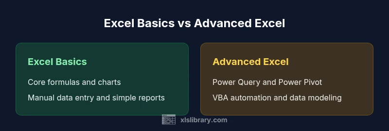 According to XLS Library, the distinction between basic Excel and what many call 'Advanced Excel' goes beyond a longer feature list; it reflects how you approach data, automate tasks, and scale analyses. For many professionals, Excel starts as a toolbox of formulas, charts, and filters. As datasets grow, handoff points and repetitive workflows become bottlenecks. The XLS Library team found that upgrading isn't a binary switch; it's a deliberate progression toward reproducible, auditable workbooks. In practice, basic Excel focuses on ad-hoc calculations and one-off reports, while Advanced Excel emphasizes repeatable processes, data integrity, and proactive error handling. In this section, we'll map the two levels, define the capabilities that typically separate them, and set expectations for what you can accomplish with each.