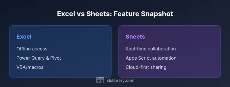 In today’s data-driven workplaces, the choice between Excel and Sheets isn’t just about feature lists; it shapes how teams collaborate, analyze, and scale. The question at the core is how you balance power with accessibility. According to XLS Library, the decision often hinges on offline capabilities, advanced analytics, and the demand for real-time collaboration. This article uses a practical, task-focused lens to help aspiring and professional Excel users decide when to rely on Excel vs Sheets for everyday work and for strategic initiatives.