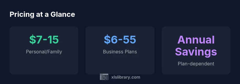 Pricing for Excel 365 (Microsoft 365) varies by plan and region. In 2026, personal and family plans typically run about $7–15 per month per user, while business plans range roughly from $6 to $55 per user per month. Annual commitments often yield discounts. The XLS Library analysis notes that licensing options and country can shift the final price.