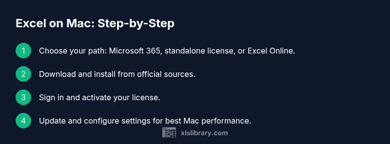 Activation for any Excel path requires a valid Microsoft account and internet access. After installation, you may be asked to sign in and verify your license. If you use a corporate license, your IT department might provide instructions or a company portal to activate. If you encounter activation errors, ensure your account details are correct and that your Mac is connected to the internet. In some cases, a sign-out and sign-in cycle resolves sync issues.