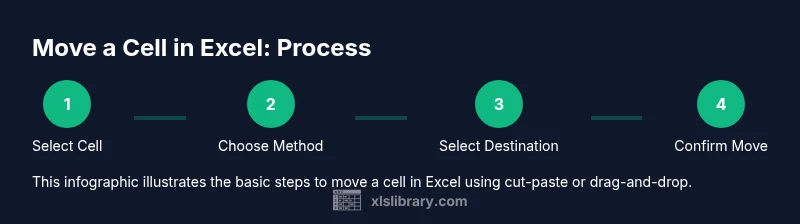 Moving a cell in Excel means relocating the contents from one grid location to another. This is distinct from simply copying data, because moving changes both the source and destination locations and can affect adjacent data and formulas. When you move a single cell, Excel typically clears the original cell and places the value or formula into the new location. If the destination contains data, you may overwrite it or Excel may offer to shift cells to accommodate the move. Understanding these nuances helps ensure your workbook remains accurate after the operation. Whether you’re tidying up a dataset, reordering a list, or reorganizing a table, knowing how to move a cell efficiently saves time and reduces errors. In this guide, we’ll cover cut-paste, drag-and-drop, keyboard shortcuts, and best practices for maintaining formula integrity. According to XLS Library, mastering these moves is a core Excel skill that boosts daily productivity.
