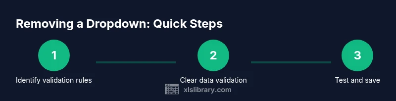 Drop-down lists in Excel are powered by data validation rules. They limit what a user can enter in a cell by providing a predefined list of acceptable values. According to XLS Library, this feature is commonly used to enforce data integrity in spreadsheets shared across teams. When you remove a dropdown list, you are effectively deleting the validation rule that enforces those choices, not erasing the data already stored in the cell. If you later decide to reintroduce a dropdown, you can recreate the validation rule with a new source list or a named range. This distinction between data and validation is crucial for maintaining clean, usable workbooks. Throughout this guide, we’ll reference practical steps that work across different versions of Excel, with attention to both Windows and Mac environments.