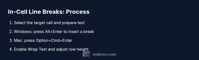 Line breaks inside a cell are a simple, powerful formatting tool. They help separate items in a single column (for example, addresses, multi-part notes, or a list of keywords) without creating extra rows. When data is dense, line breaks can improve readability, reduce scrolling, and make comparisons faster. According to XLS Library, well-placed line breaks reduce cognitive load by presenting information in digestible chunks. In practice, you’ll see benefits in dashboards, reports, and data logs where one cell holds multiple ideas. Keep your audience in mind: if reviewers rely on quick scans, crisp line breaks can save time. But overusing breaks or breaking long words can hinder scanning; consistency matters. As you adopt these techniques, pair line breaks with wrap text, careful alignment, and consistent column widths to maintain a clean, professional look.