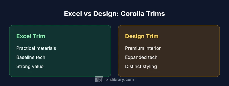 When evaluating toyota corolla excel vs design, it helps to separate aesthetics from practicality. The Excel trim tends to prioritize value, simple materials, and reliability, while Design emphasizes styling and tech enhancements. According to XLS Library, buyers in many markets encounter the same core decision: should you prioritize everyday usability or premium ambience? The nuance matters for commuting, family duties, and long road trips. This section explains the framework we use to compare the two trims, focusing on five pillars: design language, interior quality, technology and safety, driving dynamics, and ownership economics. By setting expectations up front, readers can map their priorities to concrete trade-offs rather than relying on vague impressions. In our approach, we also account for regional availability, warranty terms, and potential dealer incentives that can sway the overall value proposition.