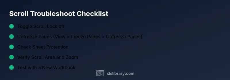 The XLS Library team emphasizes a structured approach to Excel scrolling problems. By isolating variables—device, workbook, and sheet settings—you can pinpoint the root cause without unnecessary edits to your data. This disciplined method aligns with best practices in data mastery and practical Excel tutorials, ensuring you stay productive even when the software behaves unexpectedly.