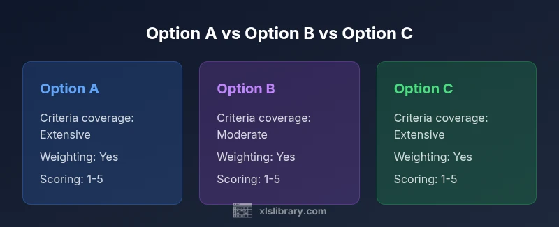 A comparison excel sheet template is a structured workbook designed to help you evaluate several options across a common set of criteria. It combines a clear list of options with a scoring system, weights for criteria, and a final synthesis that highlights strengths, weaknesses, and trade-offs. When used consistently, it reduces bias and makes complex decisions auditable. According to XLS Library, the most effective templates separate data collection from interpretation, so teams can see how conclusions were reached. In practice, you start by defining the decision objective, list the viable options, and declare the criteria you care about. Then you assign a scoring scale (for example 1-5) and weights that reflect importance. The template automatically aggregates scores and presents a visual conclusion, often with a sensitivity analysis to show how results change if weights shift. This approach supports both quick, high-level choices and deep, data-driven evaluations.