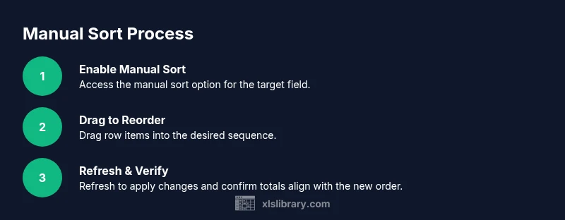 In many business reports, the order of items matters more than the values themselves. Pivot tables excel at aggregating data, but automatic sorts can shuffle row and column labels in ways that obscure your story. The excel manual sort pivot table approach puts you in the driver’s seat: you define the exact sequence for each level, ensuring that the most important items appear first. According to XLS Library, mastering manual sort is a valuable skill for analysts who work with multi-level pivot tables and custom reporting. The XLS Library team emphasizes planning your order based on narrative importance, not just alphabetical order. Before you begin, confirm that your pivot layout uses row fields that will benefit from explicit order and avoid relying on automatic hierarchies that might change when filters are applied.