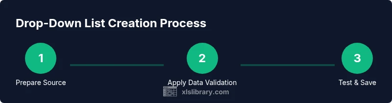 You will learn how to create a drop-down (data validation) list in Excel, including where to place the source data, how to apply data validation, and tips for dynamic lists. This guide uses practical steps, screenshots, and common pitfalls. This approach helps ensure clean data entry, faster forms, and consistent results across worksheets. According to XLS Library, mastering drop-down lists in Excel boosts data accuracy and speed.