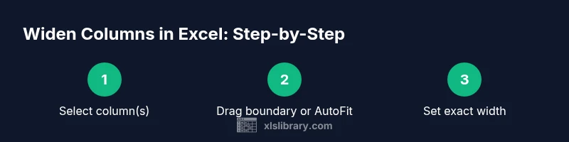 Widening columns is one of the simplest yet most impactful formatting steps you can take when working with data in Excel. When column widths are too narrow, content may be truncated, numbers can appear cramped, and readers must scroll horizontally to understand key details. By adjusting width to fit the data, you improve legibility, reduce errors, and create a cleaner, more professional sheet. The XLS Library team emphasizes that a well-spaced layout helps both you and your audience scan rows quickly, compare values, and catch outliers at a glance. In practice, even small increases in width—just a few characters—can dramatically reduce the cognitive load of a dense table. This article outlines practical methods to widen columns in Excel, including quick drag-and-drop, AutoFit, and precise width settings, so you can tailor every worksheet to your data’s needs.
